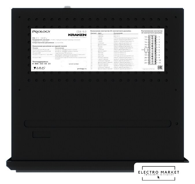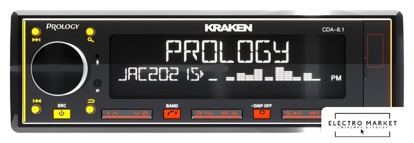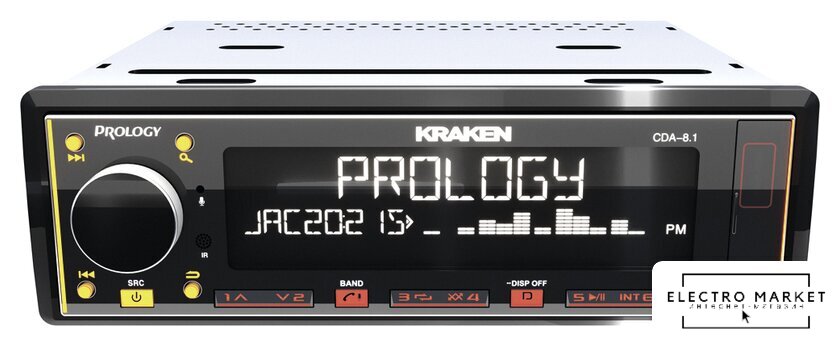 1DIN, USB-проигрыватель, USB, карты памяти, Bluetooth, усилитель 6x100 Вт, экран монохромный, пульт