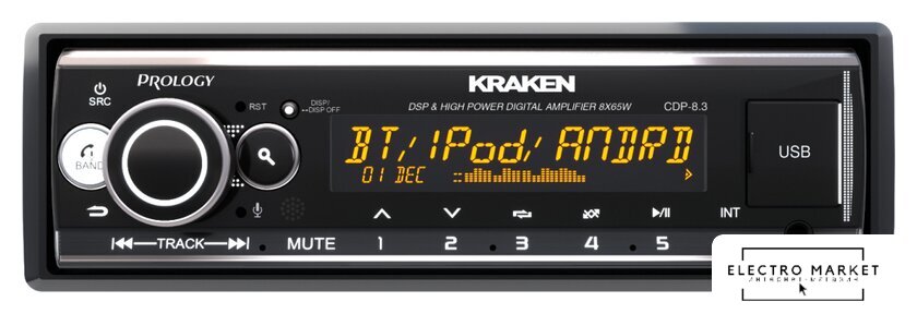 1DIN, USB-проигрыватель, USB, карты памяти, Bluetooth, усилитель 6x100 Вт, экран монохромный, пульт