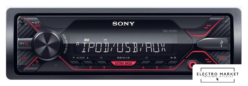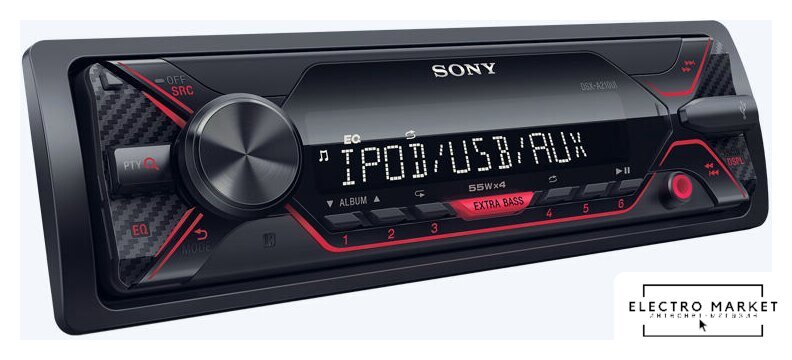 1DIN, USB-проигрыватель, USB, карты памяти, Bluetooth, усилитель 6x100 Вт, экран монохромный, пульт