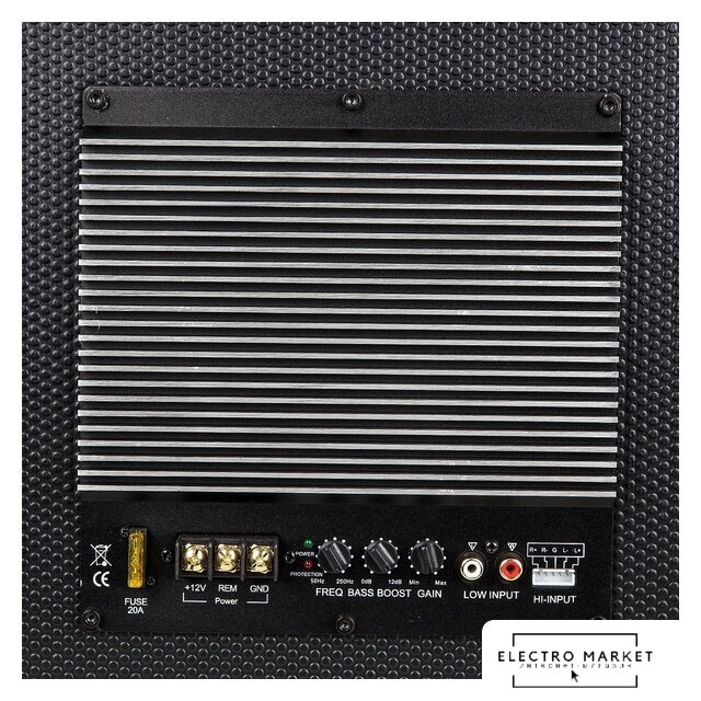 корпусной активный сабвуфер, 350 Вт, 30-500 Гц, 88 дБ, 4 Ом + 4 Ом