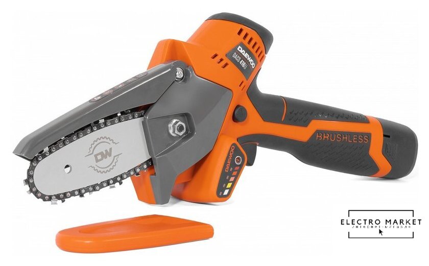 аккумуляторная, бытовая, 20 В, шаг цепи: 1/4 дюйма, длина шины: 12 см, аккумулятор в комплекте, быстрое натяжение цепи, 1.8 кг