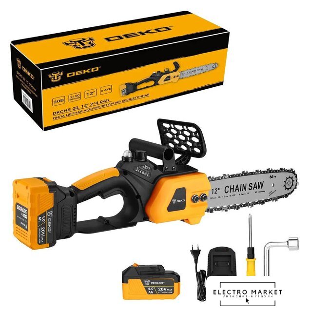 Комплект поставки | - Пила - 1 шт- Шина - 1 шт- Цепь - 1 шт- АКБ - 2 шт- Дополнительная рукоятка - 1 шт- Защитный щиток - 1 шт- Зарядное устройство - 1 шт- Отвертка - 1 шт- Торцевой ключ - 1 шт- Руководство по эксплуатации - 1 шт |