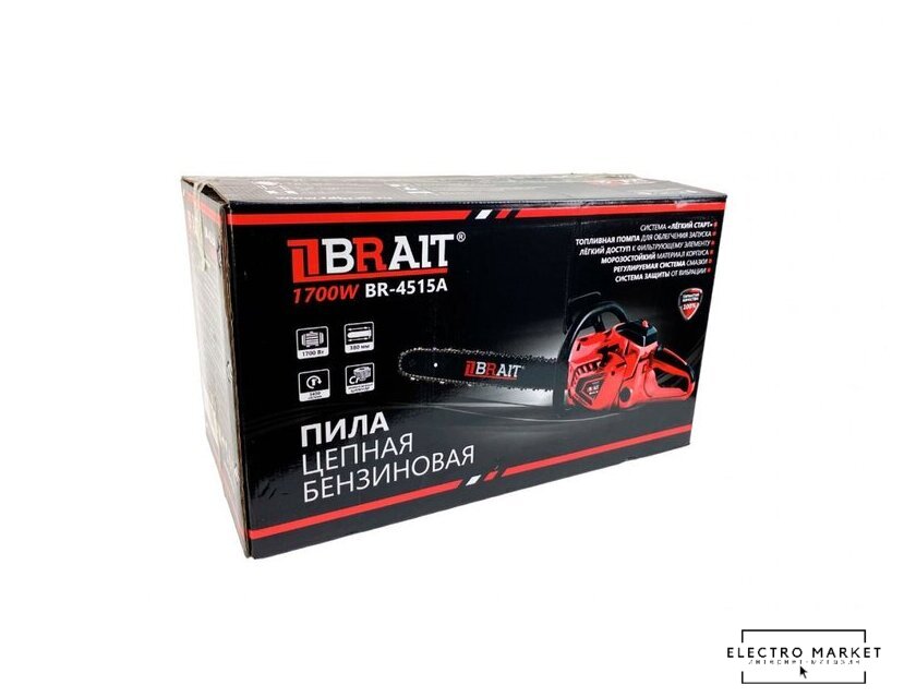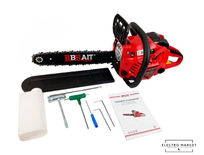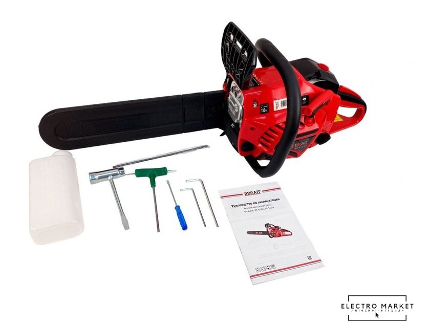 | Комплект поставки | - Пила цепная бензиновая 1 шт- Направляющая шина 1 шт- Емкость для топливной смеси 1 шт- Цепь пильная 1 шт- Инструкция по эксплуатации 1 шт- Тормоз цепи 1 шт- Комплект инструментов и принадлежностей |