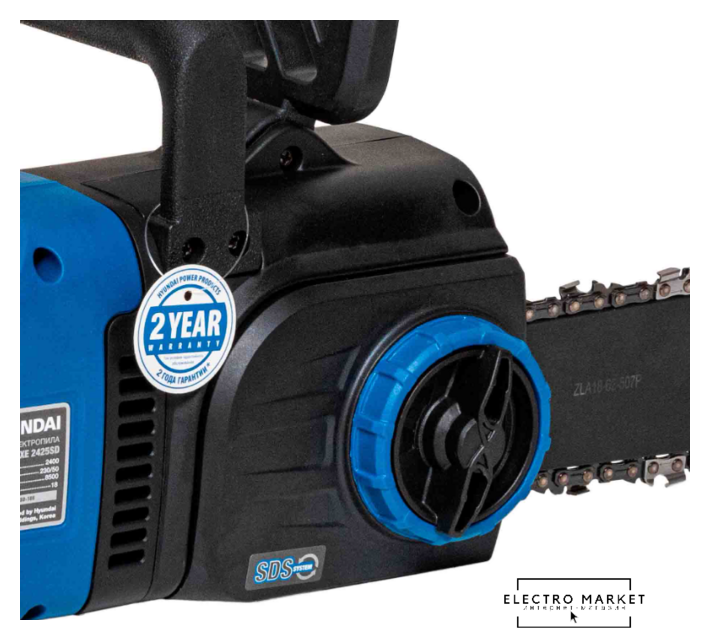 электрическая, полупрофессиональная, 2.4 кВт, шаг цепи: 3/8 дюйма, длина шины: 45 см, быстрое натяжение цепи, 5.2 кг