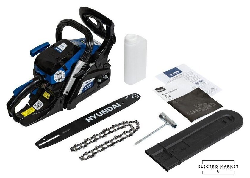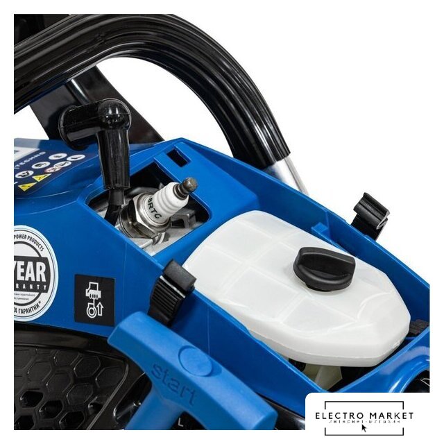Комплект поставки | • пила• шина• защитный кожух цепи• пильная цепь• набор ключей• ёмкость для смешивания топлива• руководство по эксплуатации• гарантийный талон |