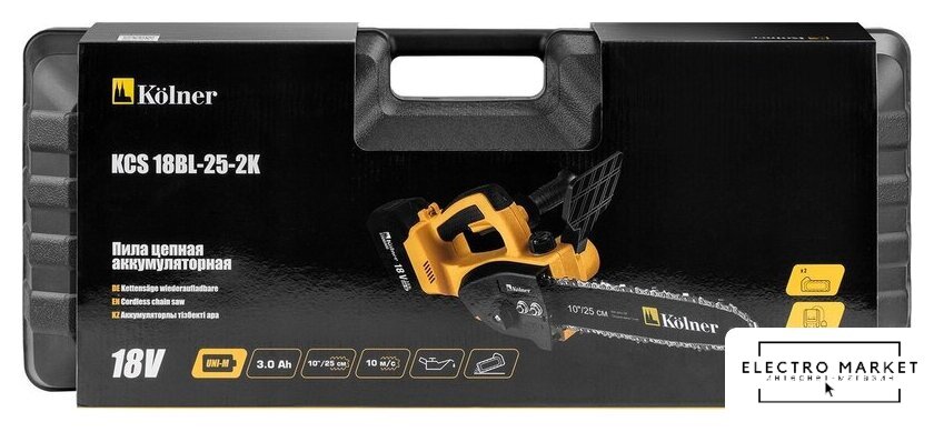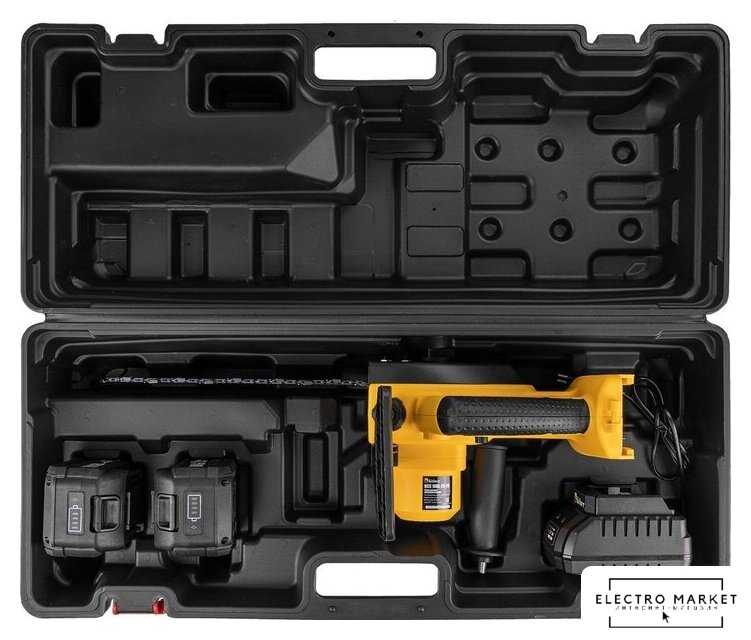 | Комплект поставки | - Рукоятка;- Шина;- Цепь;- Два аккумулятора 3.0 Ач;- Зарядное устройство;- Пластиковый кейс;- Набор инструментов. |