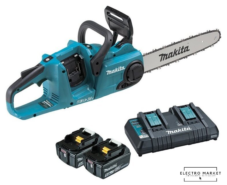 | Комплект поставки | - Пила;- З/у DC18RD- 2x 18V 5.0Ah аккумулятора BL1850B- Шина;- Цепь;- Масленка;- Чехол для шины. |