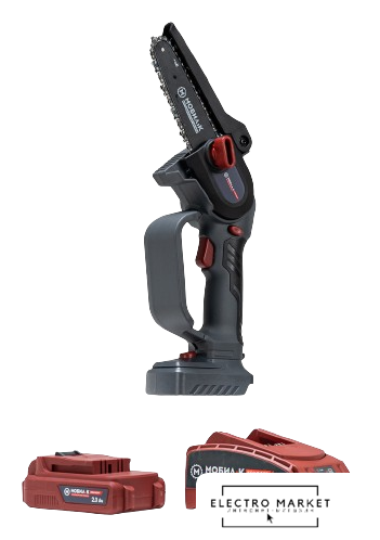 аккумуляторная, бытовая, 18 В, шаг цепи: 3/8 дюйма, длина шины: 25 см, аккумулятор в комплекте, быстрое натяжение цепи, 2.9 кг