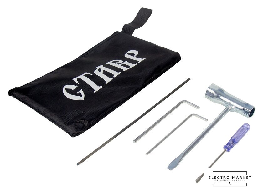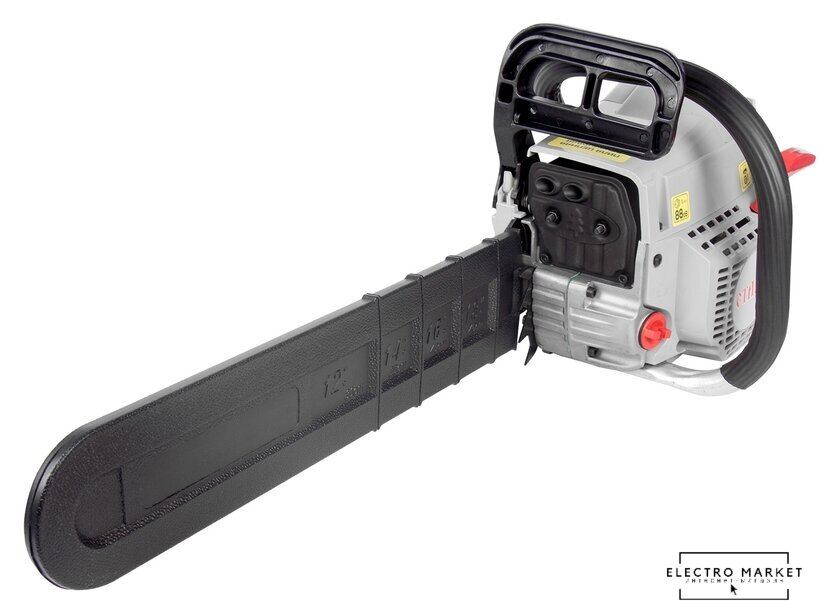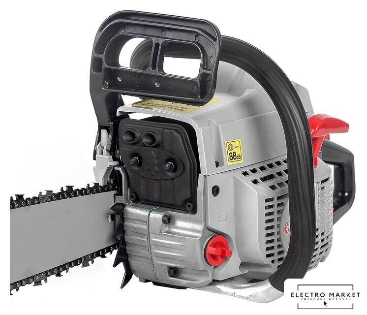 | Комплект поставки | шина, цепь, защитный чехол шины, отвертка, свечной ключ, шестигранный ключ (2 шт.) напильник, емкость для приготовления смеси (бензин+масло), чехол для инструмента |