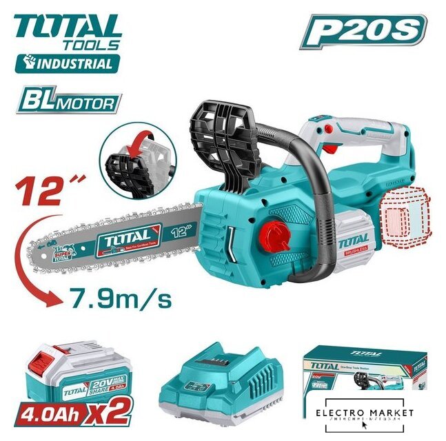| Комплект поставки | - Пила - 1 шт.- Шина 12'' - 1 шт.- Цепь 12'' - 1 шт.- Аккумулятор 4,0 Ач TFBLI2002 - 2 шт.- Зарядное устройство (TFCLI2001E) - 1 шт.- Инструкция- Коробка |