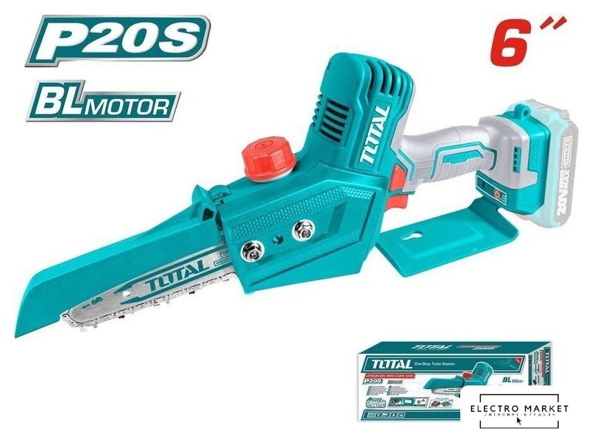 аккумуляторная, бытовая, 18 В, шаг цепи: 1/4 дюйма, длина шины: 13 см, аккумулятор в комплекте, быстрое натяжение цепи