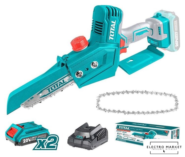| Комплект поставки | - Пила цепная аккумуляторная - 1 шт.- Шина - 1 шт.- Цепь - 1 шт.- Аккумулятор 2,0 Ач - 2 шт.- Зарядное устройство - 1 шт.- Инструкция- Коробка |