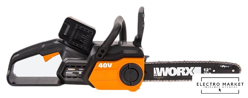 аккумуляторная, бытовая, 20 В, шаг цепи: 3/8 дюйма, длина шины: 40 см, аккумулятор в комплекте, быстрое натяжение цепи, 6.6 кг
