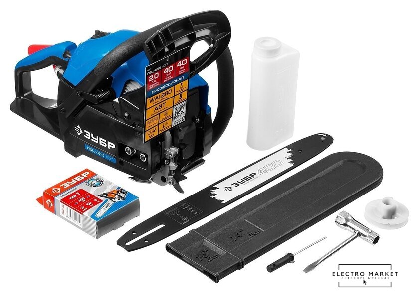 Комплект поставки | - Пила 1 шт.- Цепь пильная 1 шт.- Направляющая цепи (шина) 1 шт.- Кожух защитный 1 шт.- Ключ трубчатый/отвертка 1 шт.- Емкость для смешивания 1 шт.- Дополнительная катушка стартера 1 шт.- Инструкции по безопасности 1 экз.- Руководство по эксплуатации 1 экз. |