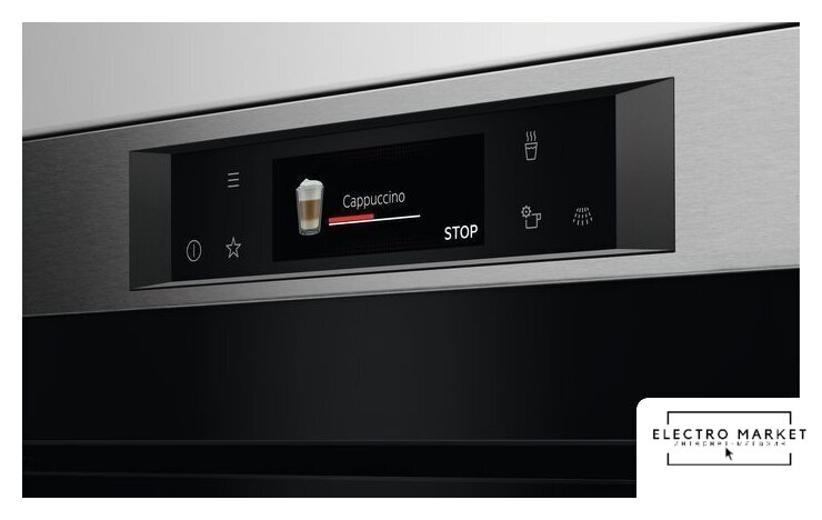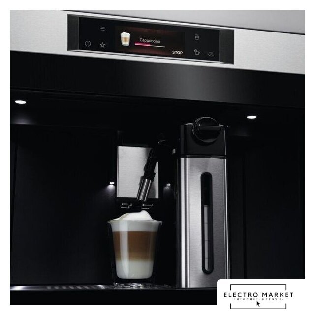кофемашина, встраиваемая, 1350 Вт, корпус стекло, капучинатор автоматический (двойной капучино), используемый кофе: зерновой/молотый, цвет нержавеющая сталь/черный