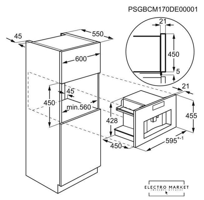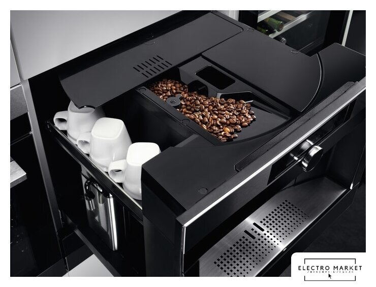 кофемашина, встраиваемая, 1600 Вт, корпус металл/пластик, капучинатор автоматический (двойной капучино), используемый кофе: молотый/зерновой, цвет нержавеющая сталь/черный