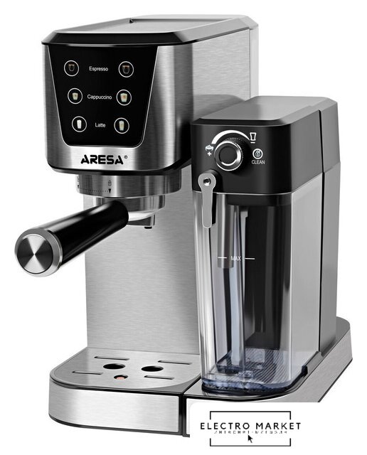 рожковая помповая кофеварка, 1470 Вт, корпус металл/пластик, капучинатор автоматический, используемый кофе: молотый, цвет нержавеющая сталь/черный