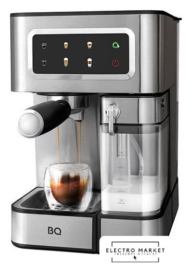 1400 Вт, корпус металл/пластик, капучинатор автоматический, используемый кофе: молотый, цвет серебристый/черный