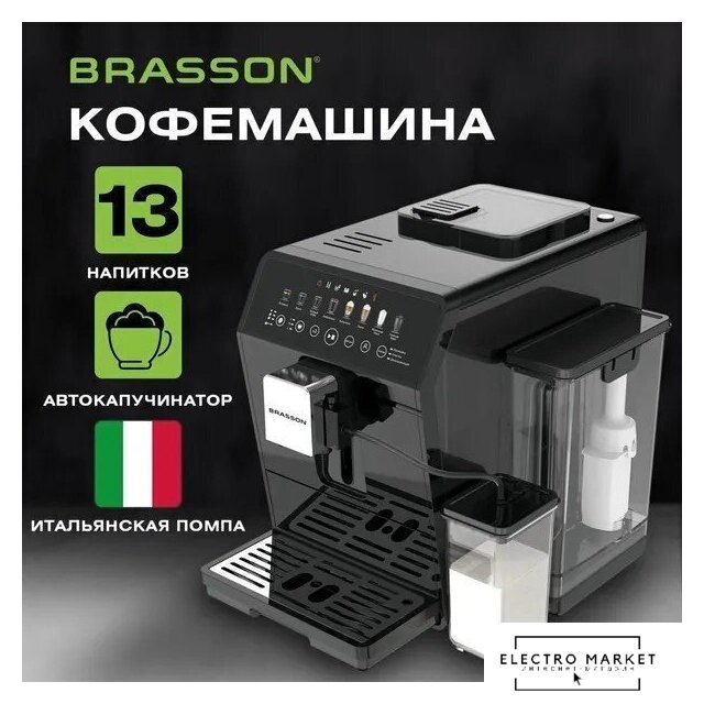 кофемашина, корпус пластик, капучинатор автоматический, используемый кофе: молотый/зерновой, цвет черный