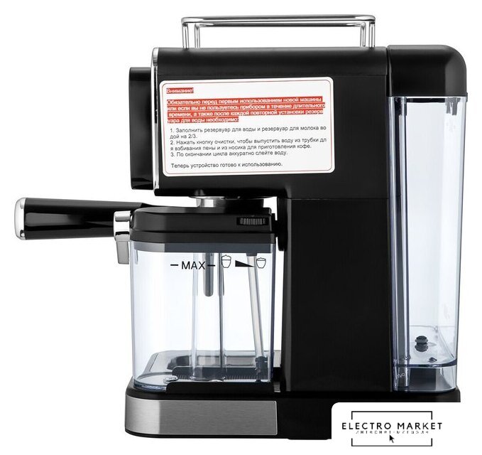 рожковая кофеварка, 850 Вт, корпус металл/пластик, капучинатор ручной, цвет серебристый/черный
