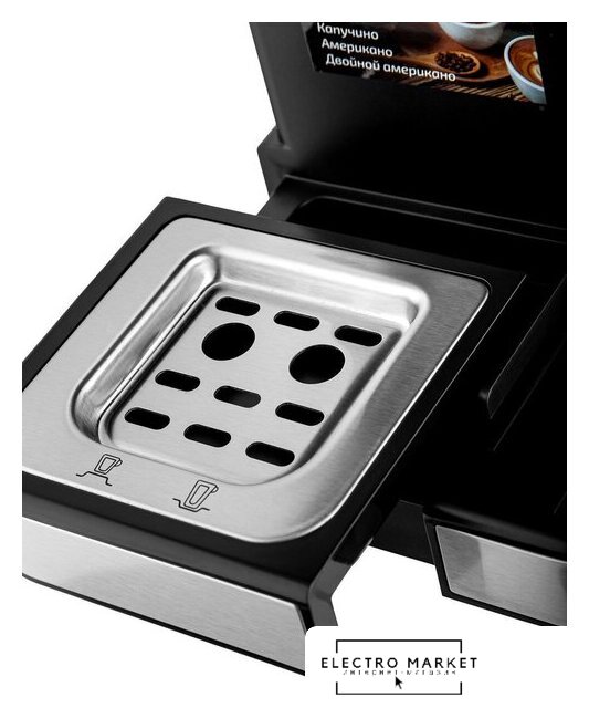 1400 Вт, корпус металл/пластик, капучинатор ручной, используемый кофе: молотый, цвет нержавеющая сталь
