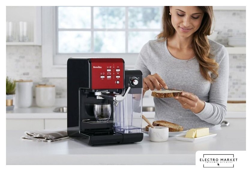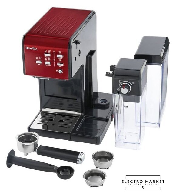 рожковая помповая кофеварка, капучинатор автоматический, используемый кофе: молотый, цвет красный