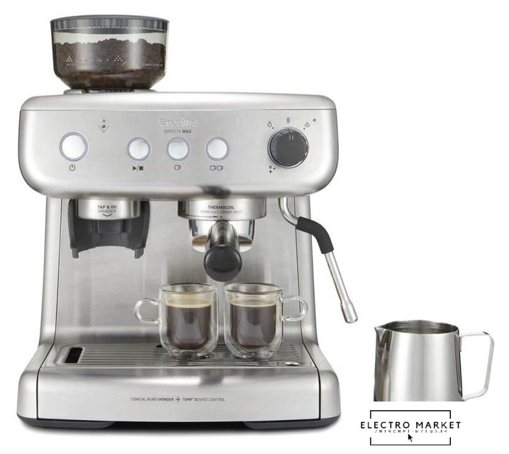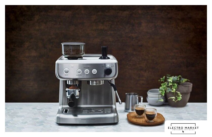 рожковая помповая кофеварка, 1050 Вт, корпус металл/пластик, капучинатор ручной, используемый кофе: молотый/чалды, цвет нержавеющая сталь