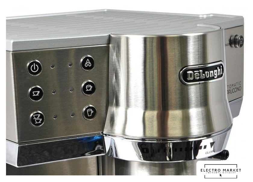 рожковая помповая кофеварка, 1770 Вт, корпус металл/пластик, капучинатор ручной, используемый кофе: молотый/зерновой, цвет нержавеющая сталь