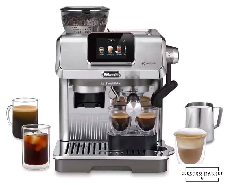 1450 Вт, корпус металл/пластик, капучинатор ручной, используемый кофе: молотый/зерновой, цвет нержавеющая сталь