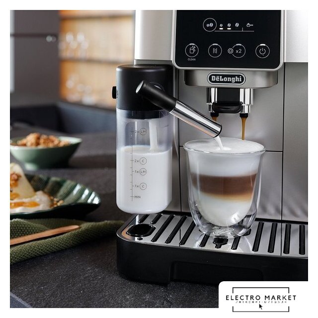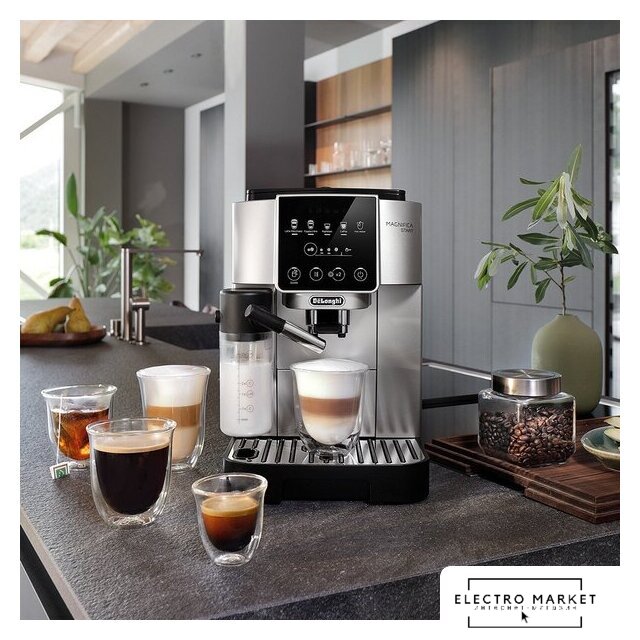 кофемашина, корпус металл/пластик, капучинатор автоматический, используемый кофе: молотый/зерновой, цвет серебристый/черный