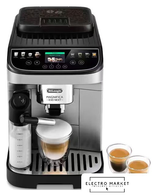 1500 Вт, корпус металл/пластик, капучинатор автоматический, используемый кофе: зерновой, цвет серебристый/черный