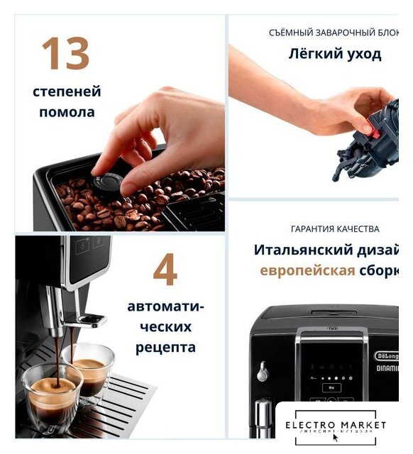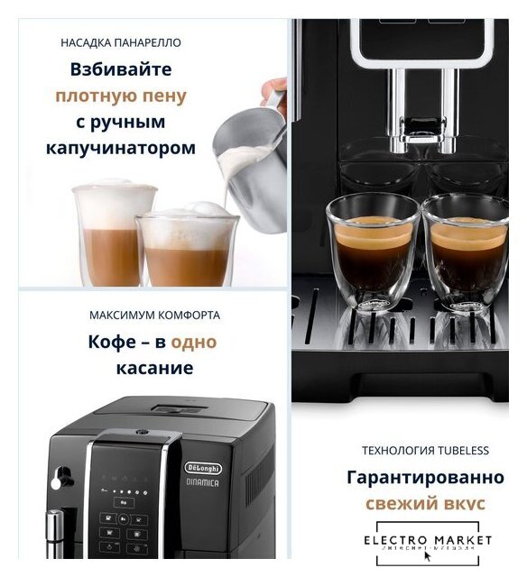 кофемашина, корпус пластик, капучинатор автоматический, используемый кофе: молотый/зерновой, цвет черный