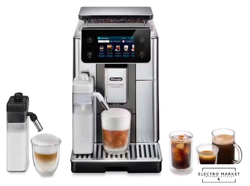кофемашина, 1450 Вт, корпус металл/пластик, капучинатор автоматический, используемый кофе: молотый/зерновой, цвет нержавеющая сталь/черный