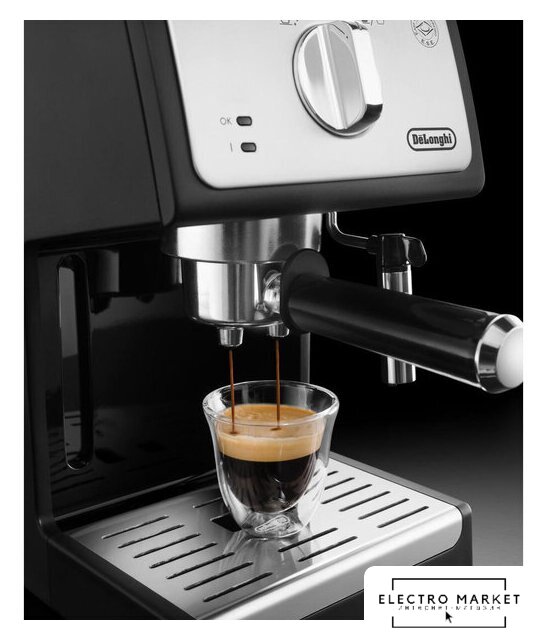 рожковая помповая кофеварка, 1400 Вт, корпус пластик, капучинатор автоматический, используемый кофе: молотый, цвет черный