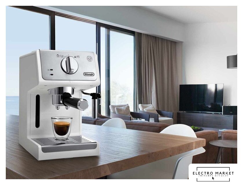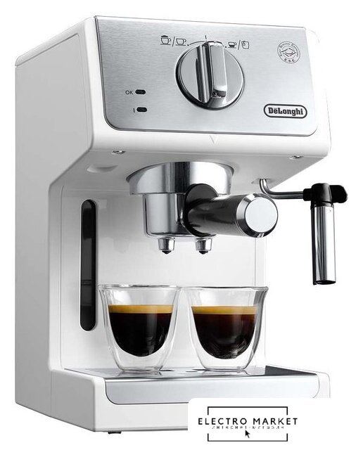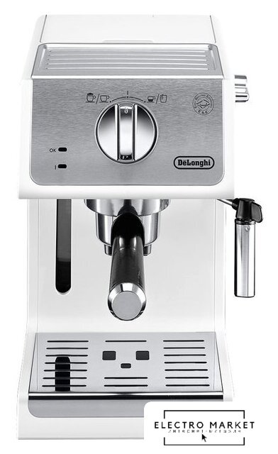 рожковая помповая кофеварка, 1050 Вт, корпус металл, капучинатор ручной, используемый кофе: молотый, цвет серебристый