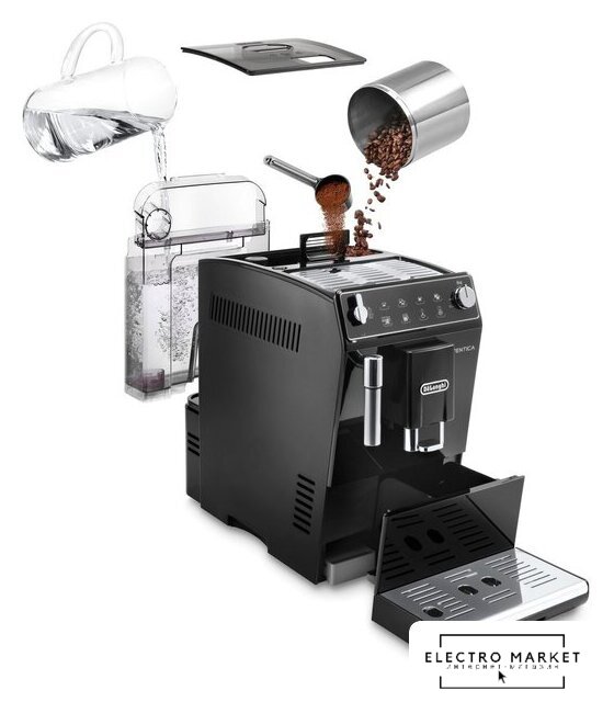 кофемашина, 1450 Вт, корпус пластик, капучинатор автоматический, используемый кофе: молотый/зерновой, цвет черный