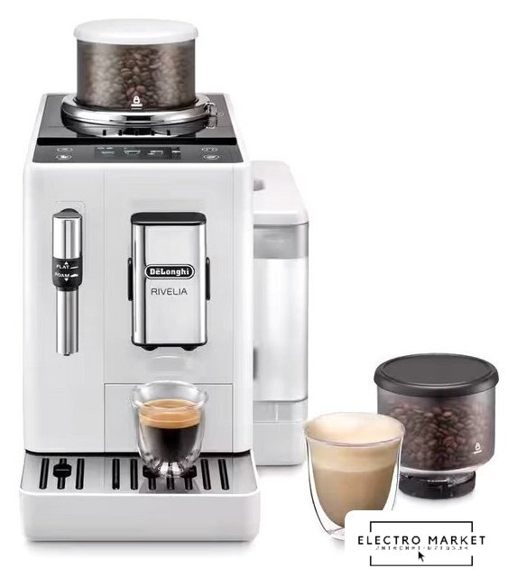 кофемашина, 1450 Вт, корпус металл/пластик, капучинатор автоматический, используемый кофе: зерновой, цвет белый/черный
