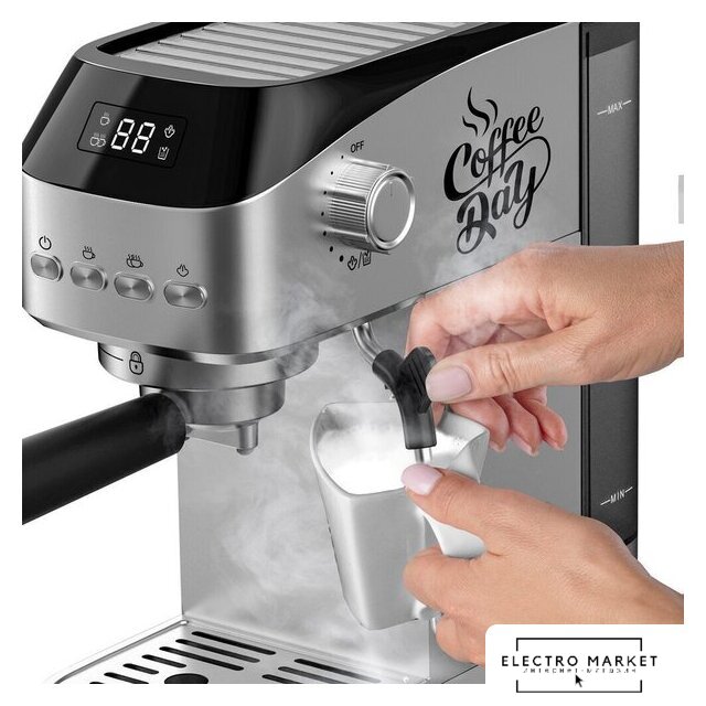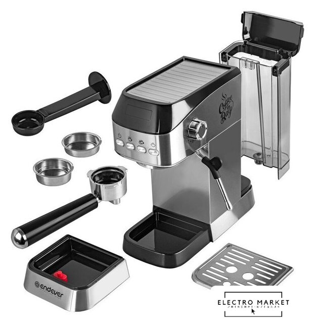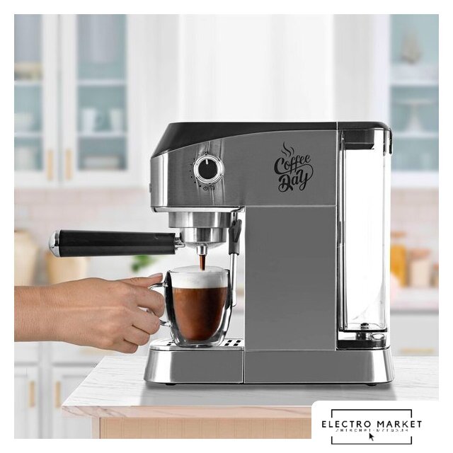 рожковая кофеварка, 850 Вт, корпус металл/пластик, капучинатор ручной, цвет серебристый/черный