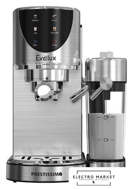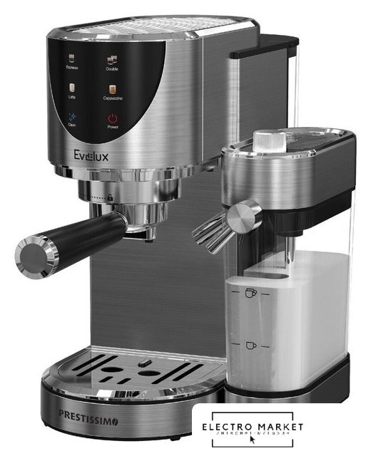 1400 Вт, корпус металл/пластик, капучинатор ручной, используемый кофе: молотый, цвет нержавеющая сталь
