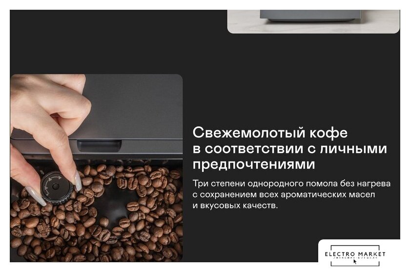 кофемашина, 1350 Вт, корпус пластик, капучинатор автоматический, используемый кофе: молотый/зерновой, цвет черный
