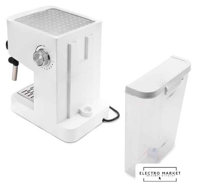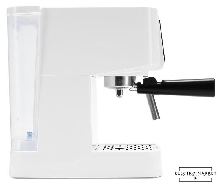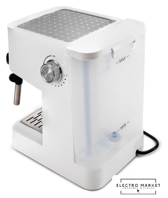 рожковая бойлерная кофеварка, 1050 Вт, корпус металл/пластик, капучинатор ручной, используемый кофе: молотый, цвет белый/нержавеющая сталь
