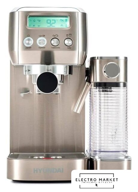 1450 Вт, корпус металл/пластик, капучинатор ручной, используемый кофе: молотый, цвет серебристый
