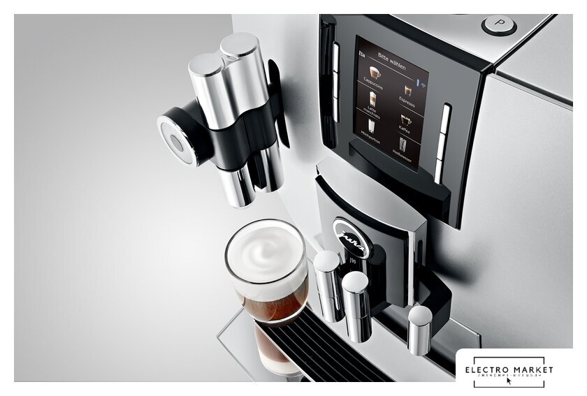 кофемашина, встраиваемая, 1350 Вт, корпус стекло, капучинатор автоматический (двойной капучино), используемый кофе: зерновой/молотый, цвет нержавеющая сталь/черный
