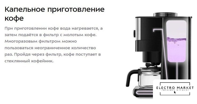 капельная кофеварка, 1000 Вт, корпус металл/пластик, цвет нержавеющая сталь/черный
