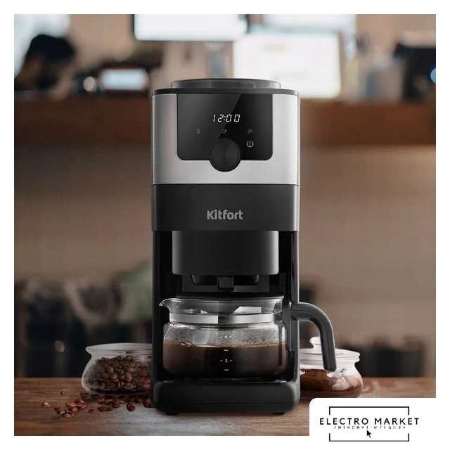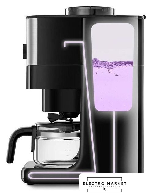 капельная кофеварка, 1050 Вт, корпус металл/пластик, используемый кофе: молотый/зерновой, цвет нержавеющая сталь/черный