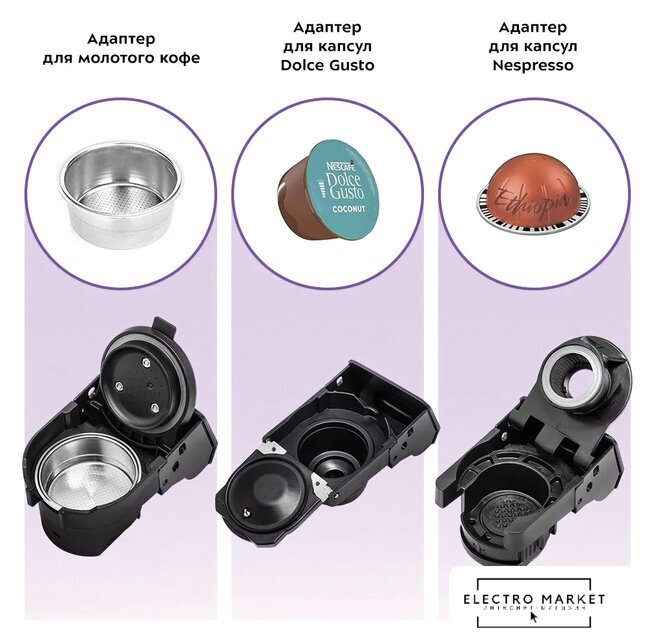 | Тип используемого кофе | молотый, зерновой, капсулы |