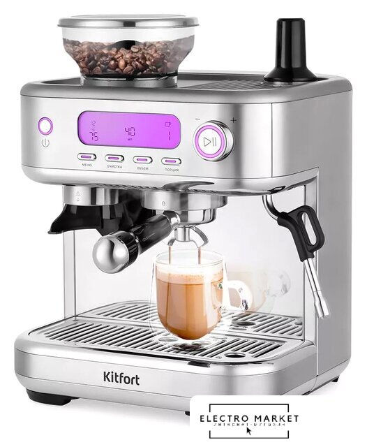рожковая помповая кофеварка, корпус металл/пластик, капучинатор автоматический, используемый кофе: молотый/чалды, цвет серебристый/черный