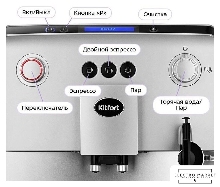 кофемашина, 1450 Вт, корпус металл/пластик, капучинатор ручной, используемый кофе: молотый/зерновой, цвет нержавеющая сталь