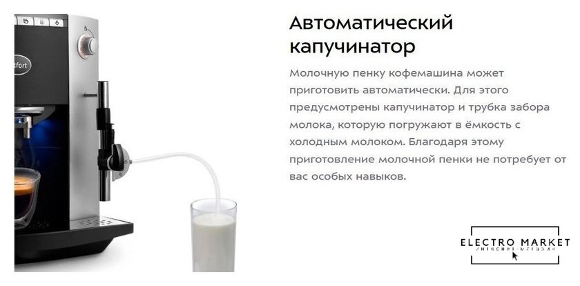 кофемашина, 1500 Вт, корпус пластик, капучинатор автоматический, используемый кофе: молотый/зерновой, цвет черный