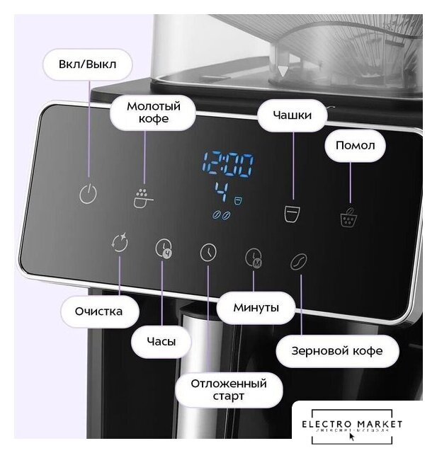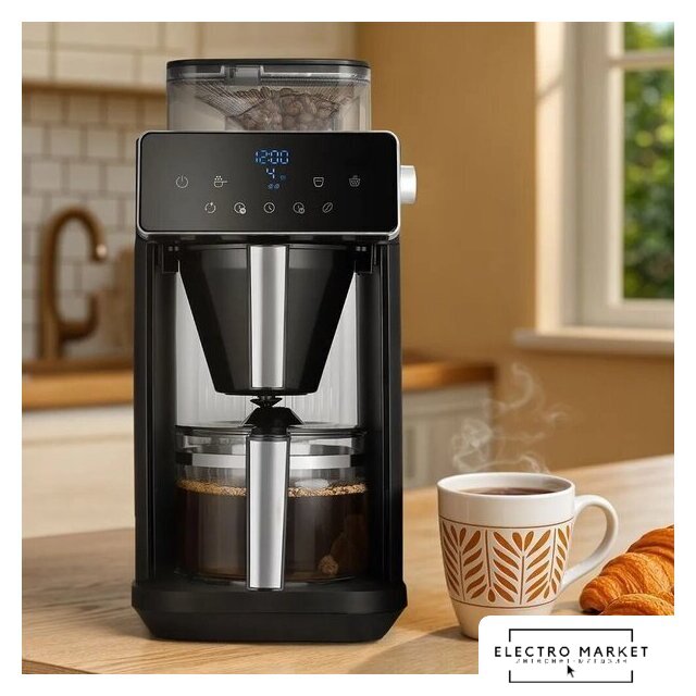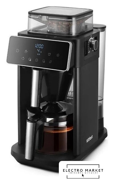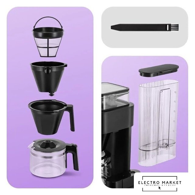 капельная кофеварка, 1050 Вт, корпус металл/пластик, используемый кофе: молотый/зерновой, цвет нержавеющая сталь/черный